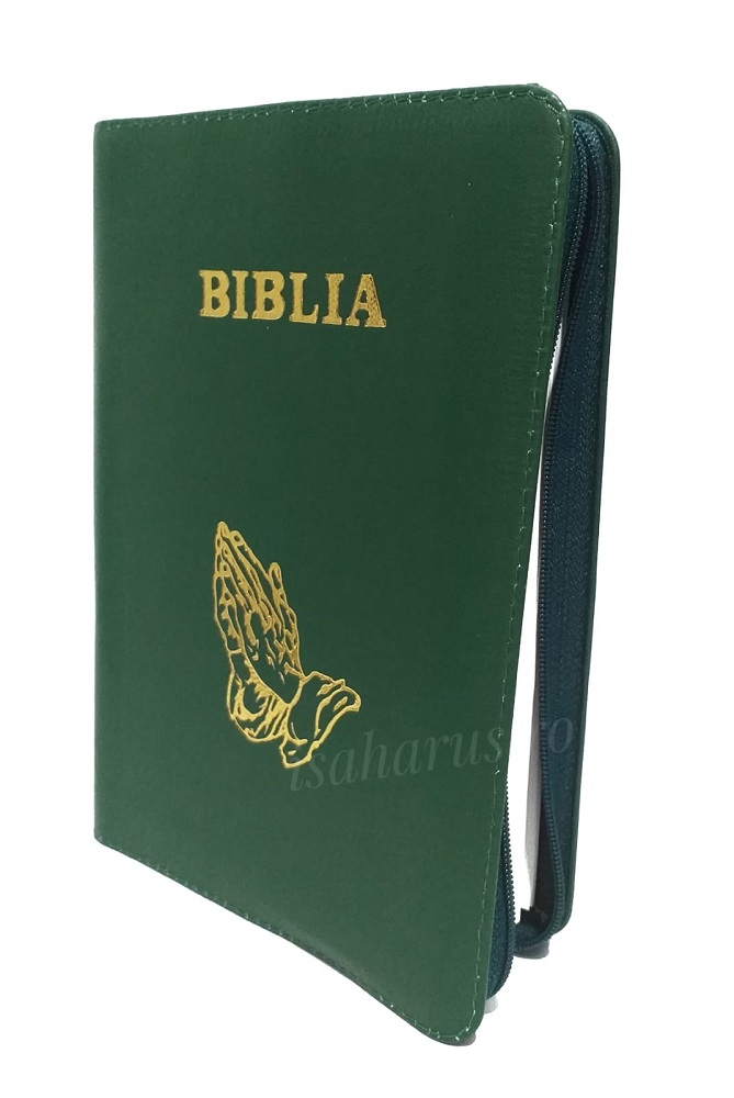 Biblia - format mediu [copertă din piele verde, fermoar, mâini în rugăciune]
