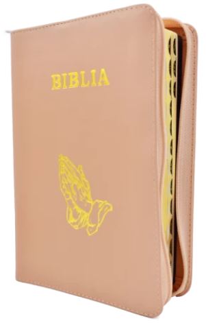 Biblia - format mediu [piele roz pal, fermoar, margini aurii, index]