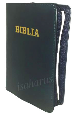 Biblia sau Sfânta Scriptură a Vechiului și Noului Testament cu trimiteri. Biblie mică, copertă piele, cu fermoar, margini albe, fără index.