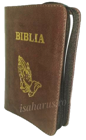 Biblia sau Sfânta Scriptură a Vechiului și Noului Testament cu trimiteri. Biblie mică, copertă piele, cu fermoar, margini albe, fără index.