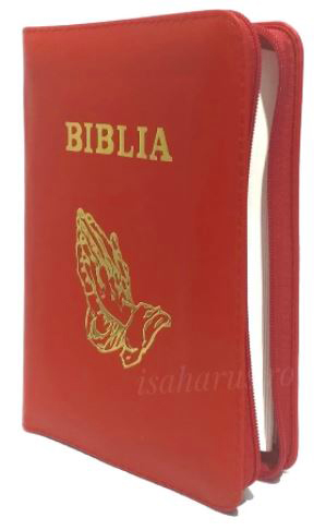 Biblia sau Sfânta Scriptură a Vechiului și Noului Testament cu trimiteri. Biblie mică, copertă piele, cu fermoar, margini albe, fără index.