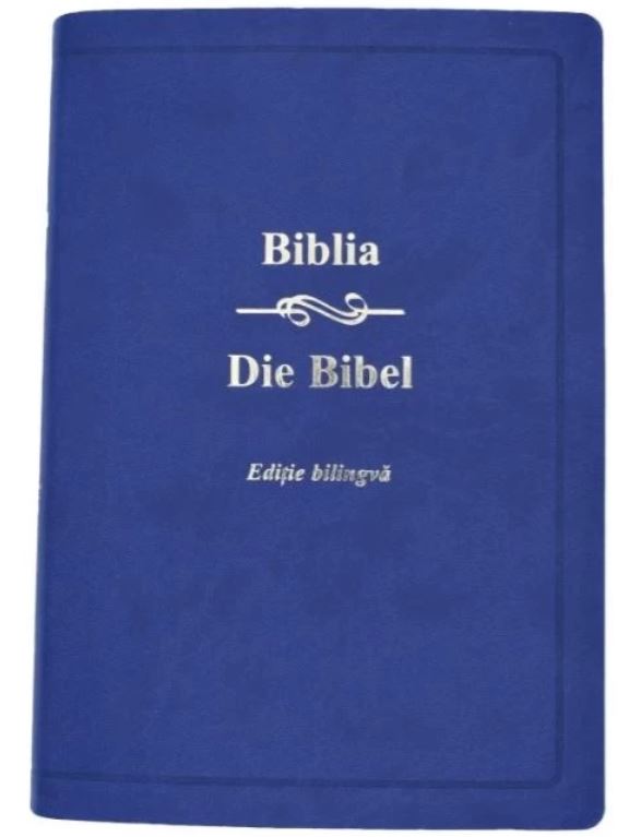 Biblie - ediție bilingvă română-germană. Pentru limba română s-a folosit traducerea Dumitru Cornilescu revizuită ortografic, iar pentru limba germană s-a folosit traducerea Schlachter 2000.