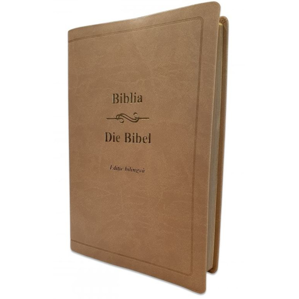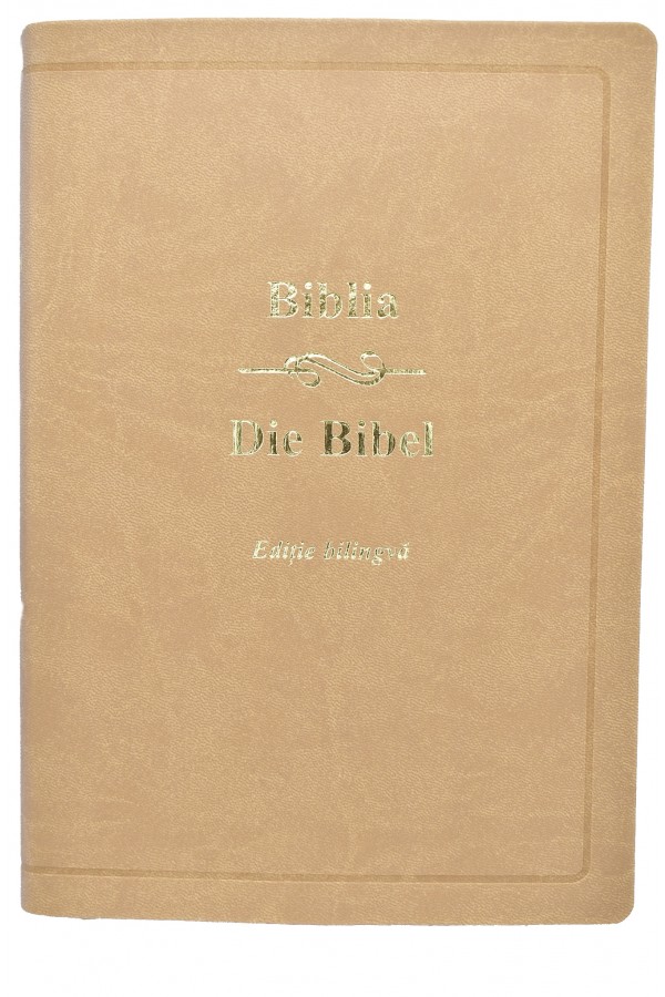 Biblie - ediție bilingvă română-germană. Pentru limba română s-a folosit traducerea Dumitru Cornilescu revizuită ortografic, iar pentru limba germană s-a folosit traducerea Schlachter 2000.