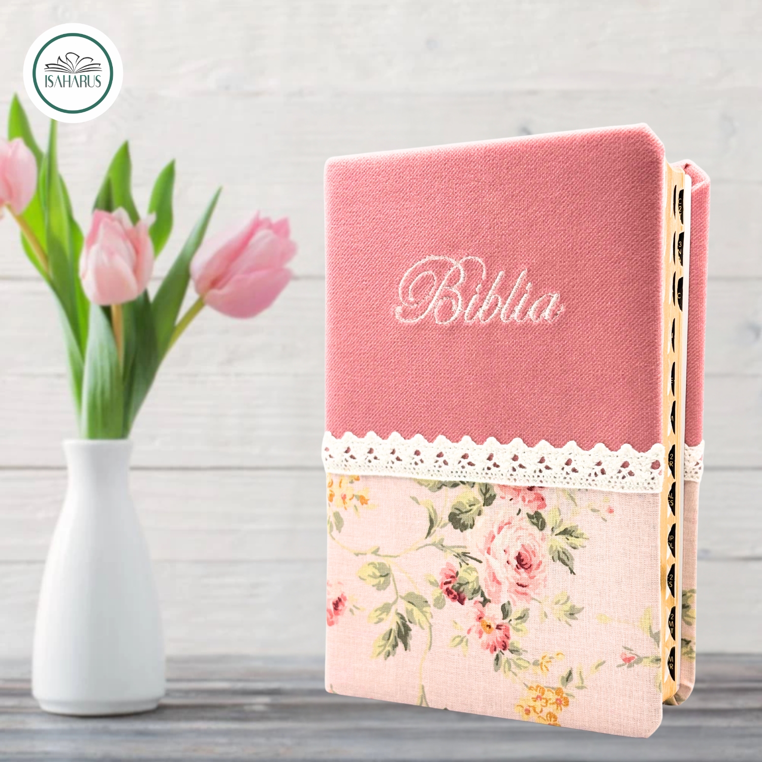 Biblia handmade - format mediu [margini aurii, index, model floral 4]