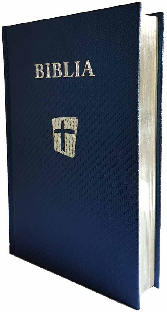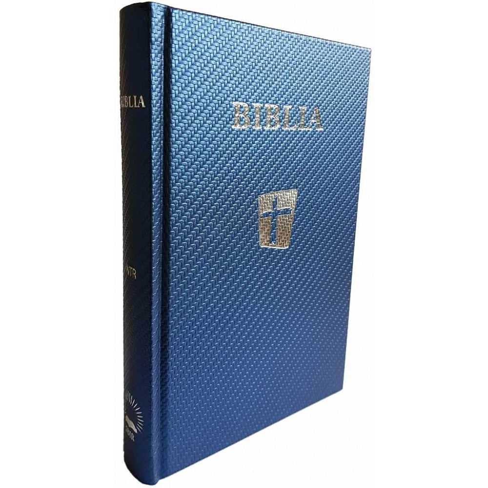 Noua traducere revizuita in limba romana (NTR), disponibila intr-un singur format (mediu). Coperta cartonata de culoare bleumarin metalizat, cu striatii, margini argintii si doua semne de carte. Pe coperta fata are inscriptionat cu litere argintii BIBLIA. Contine tabel de greutati si masuri.