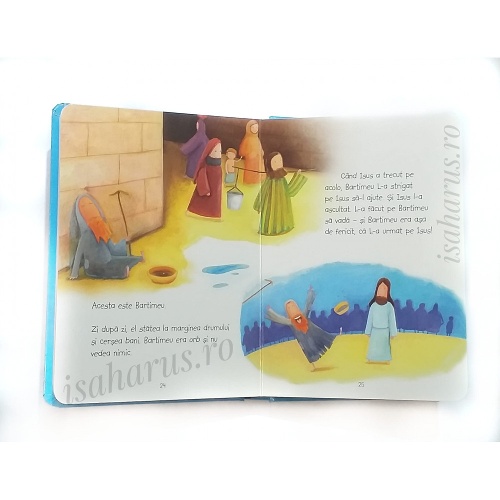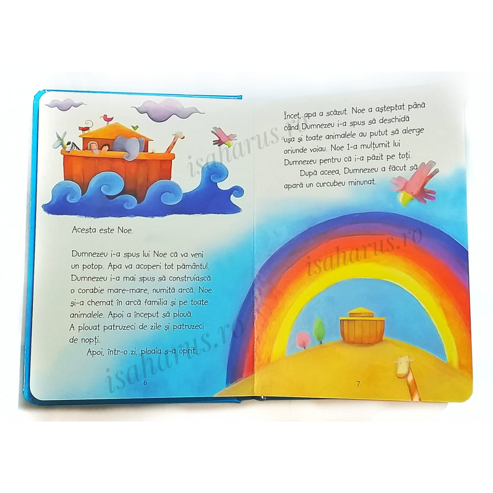O Biblie in imagini, tiparita pe carton lucios, tare, special pentru copiii pana la 6 ani. Cartea combina textul simplu cu ilustratii vii, invatand conceptele primare despre Dumnezeu care a creat lumea si a iubit oamenii pe care i-a creat.
