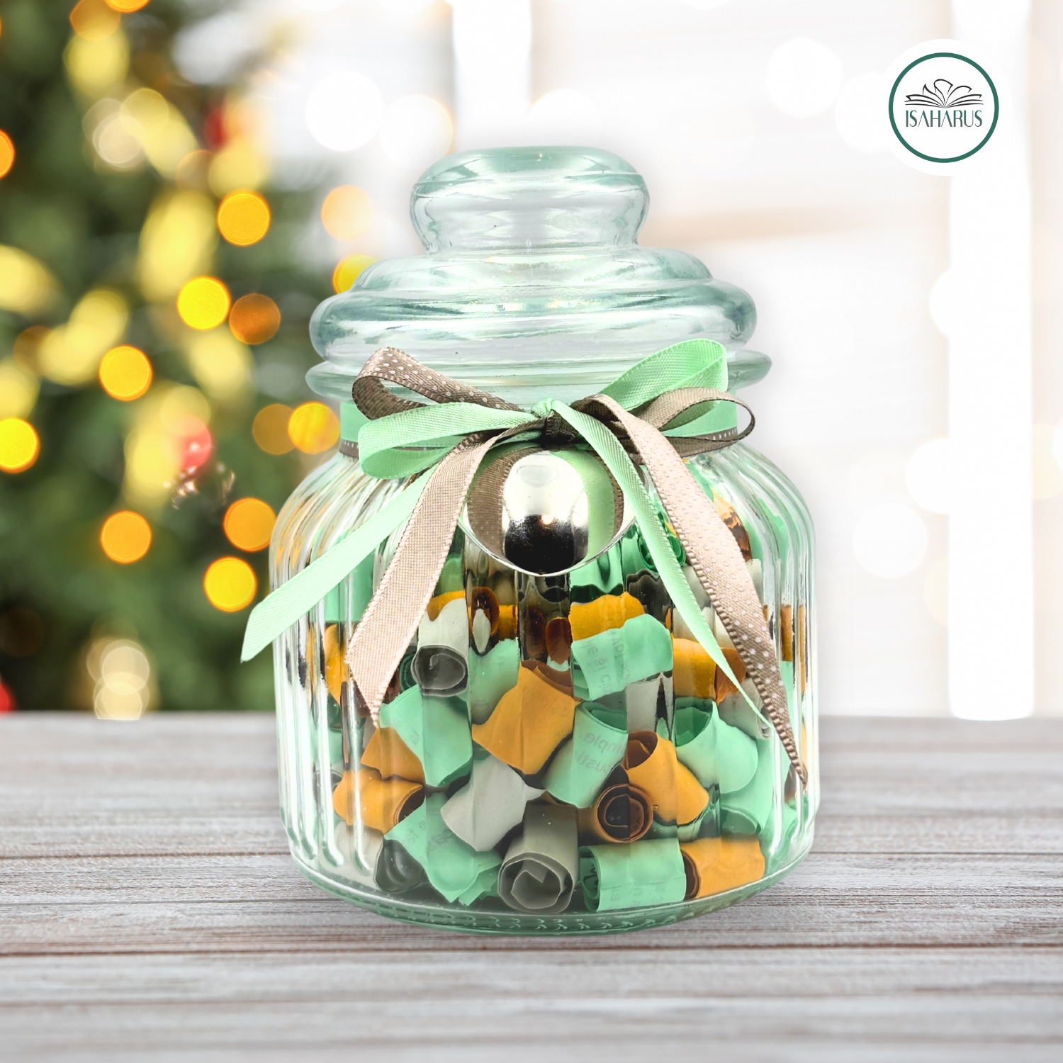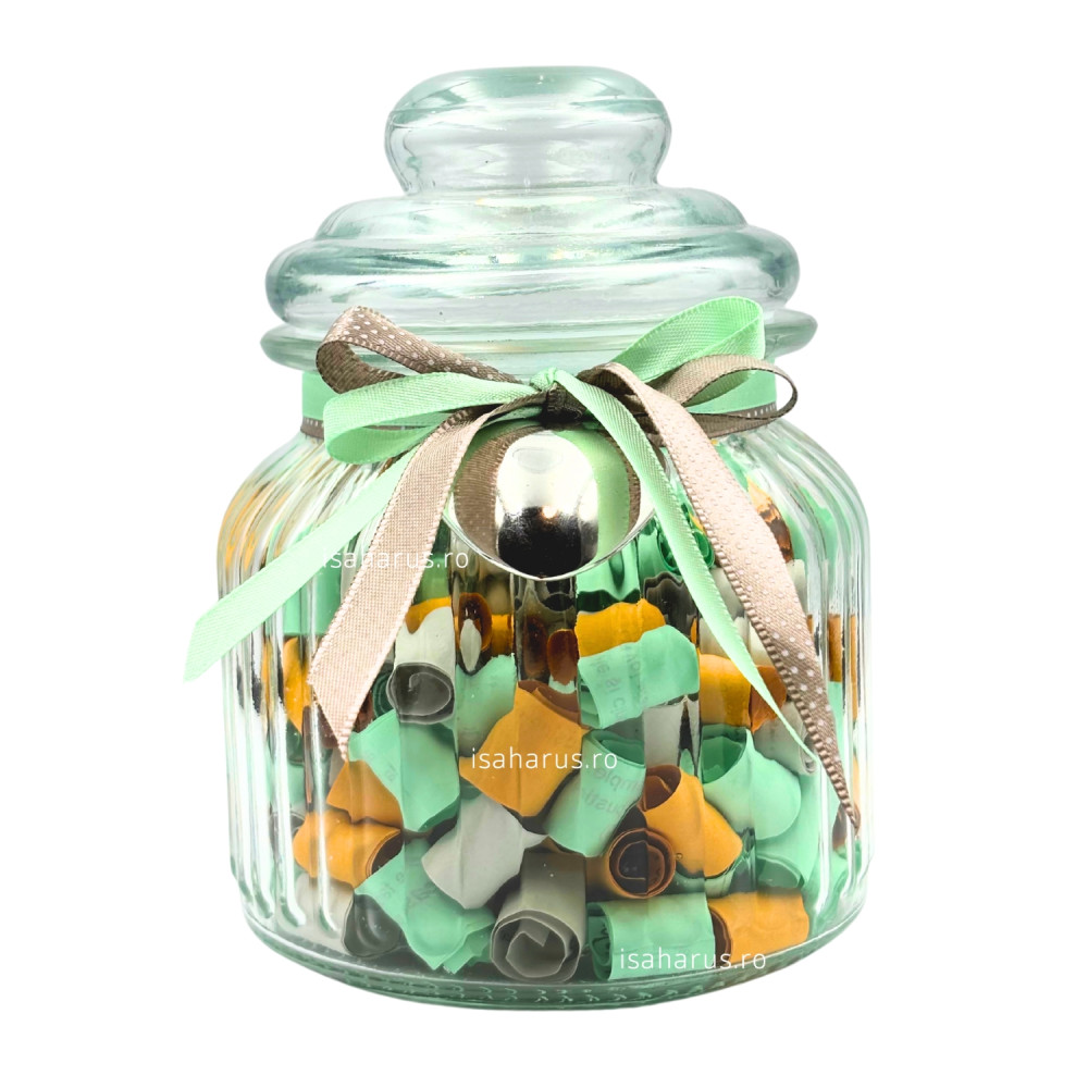 Borcanele cu versete biblice reprezintă o modalitate creativă și inspirată de a aduce cu tine în fiecare zi cuvinte încurajatoare și învățături spirituale. Fiecare borcan este meticulos creat pentru a oferi o experiență vizuală și spirituală, aducând lumină și încredere în viața cotidiană. Practic, borcanele cu versete biblice nu sunt doar obiecte decorative, ci devin surse constante de inspirație. În fiecare dimineață sau în momentele de reflecție, puteți deschide borcanul și alege un verset care să vă ghideze sau să vă ofere sprijin spiritual în cursul zilei. Așadar, aceste borcane devin nu doar accesorii frumoase, ci și instrumente care vă conectează la înțelepciunea și învățăturile sacre.