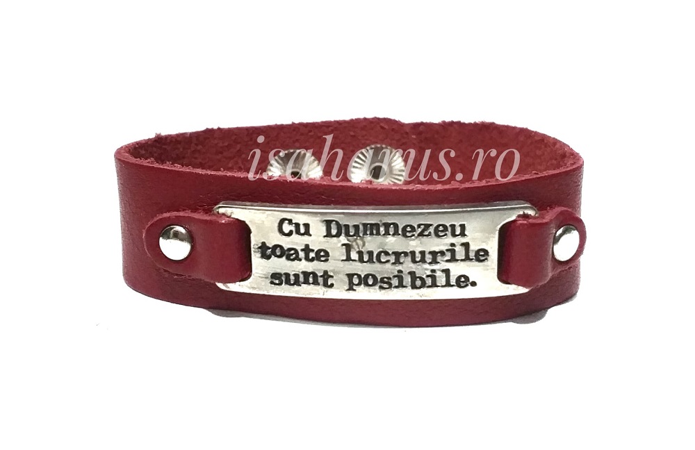 Brățară din piele vişinie cu capse - Cu Dumnezeu toate lucrurile sunt posibile