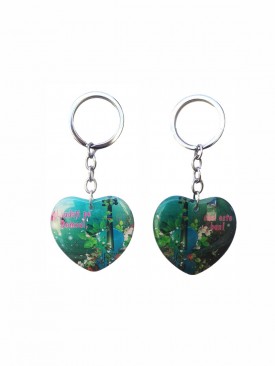 Breloc din plastic in forma de inima cu mesaje crestine si cu lantisor metalic.
