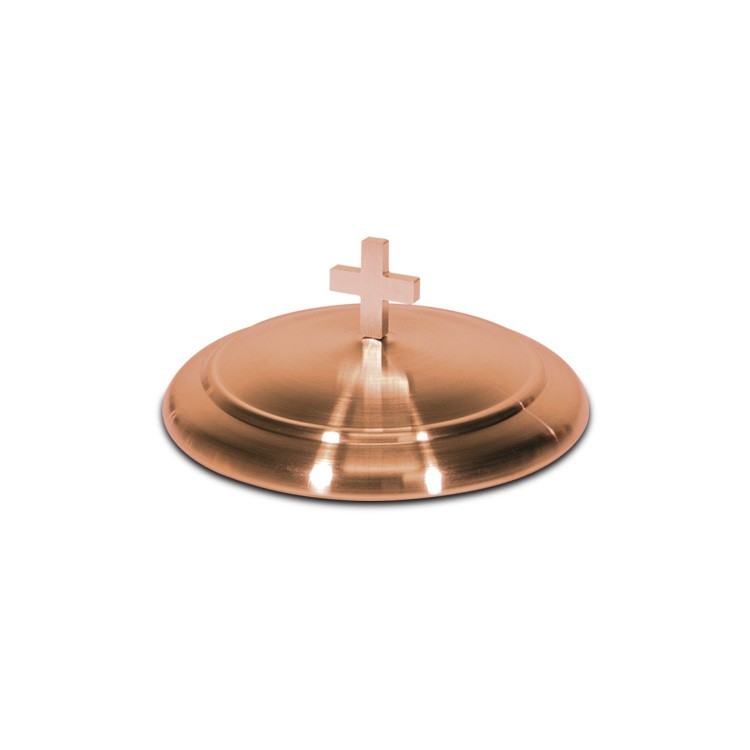 Capacul pentru farfuria de impartasanie este realizat din inox. Ca sistem de prindere are atasat in mijloc o cruce simpla, dar eleganta, care se insurubeaza foarte usor. Capacul intregeste armonios ansamblul de piese ce compun setul pentru Cina Domnului.