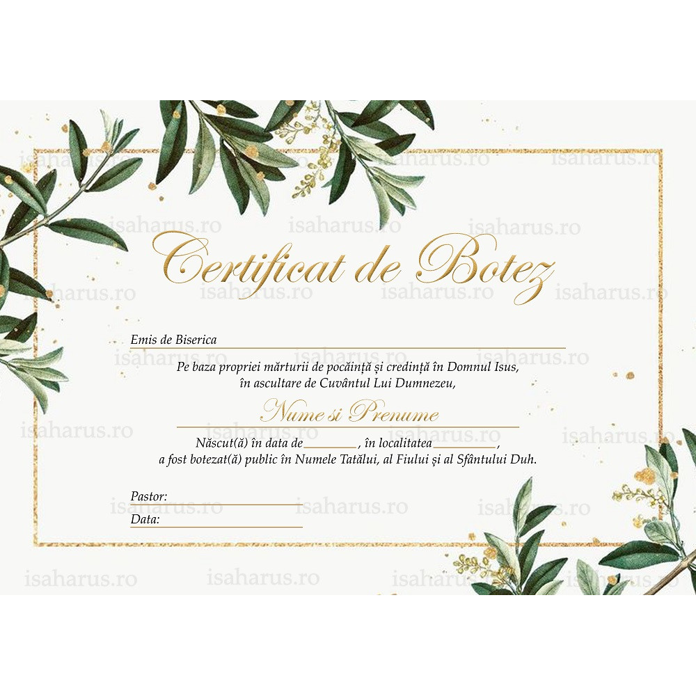Acest model se poate personaliza, în funcție de preferințe: completarea digitală a datelor candidaților, adăugarea sau eliminarea anumitor informații din certificat. Cost personalizare / bucată: 10 lei extra