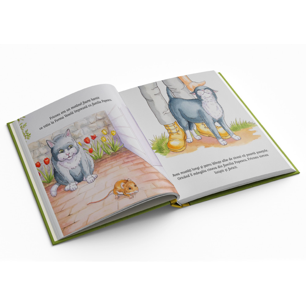 Fricosu - motănelul sperios locuia alături de familia Popescu la Ferma veselă. El era un motănel harnic care torcea plin de voioșie. Totuși avea o problemă: se speria de orice și oricine. Oare ce descoperire îl va ajuta să-și învingă teama?