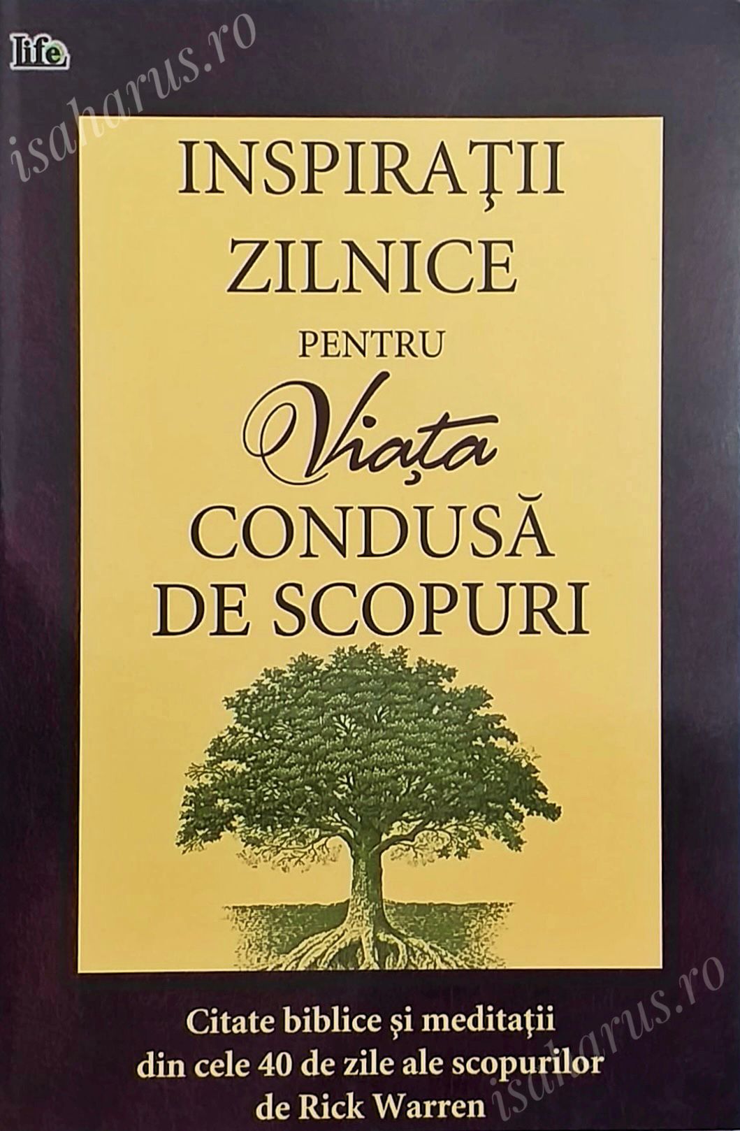 "Inspiratii zilnice pentru viata condusa de scopuri" combina multe versete biblice alese de catre autor, Rick Warren, cu meditatii din best-sellerul sau, "Viata condusa de scopuri". Conceputa pentru a fi folosita ca o carte de sine statatoare, avand un format potrivit pentru meditatii zilnice sau ca o unealta de referinta comoda pentru citirea cartii "Viata condusa de scopuri", fiecare sectiune corespunde cu una dintre cele 40 de zile ale scopurilor.