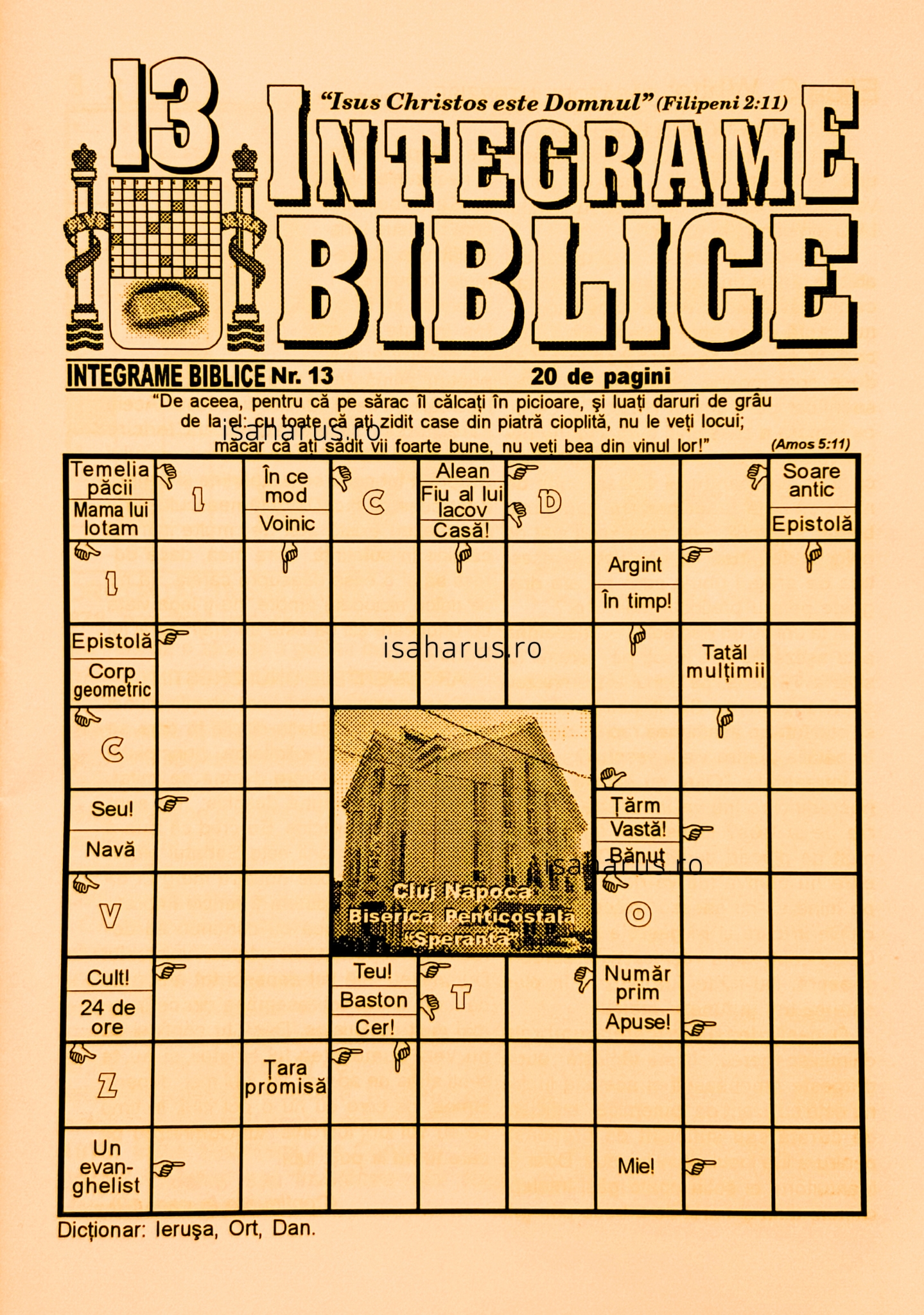 Revista "Integrame Biblice" este un instrument excelent de relaxare, ba chiar unul de aprofundare a cunoștințelor biblice într-un mod cât se poate de plăcut și antrenant. Revista se adresează tuturor celor pasionați de rebusuri si integrame, dar mai ales de cunoașterea detaliată a conținutului Scripturii. Atât cei tineri, cât și adulții o vor găsi extrem de captivantă!