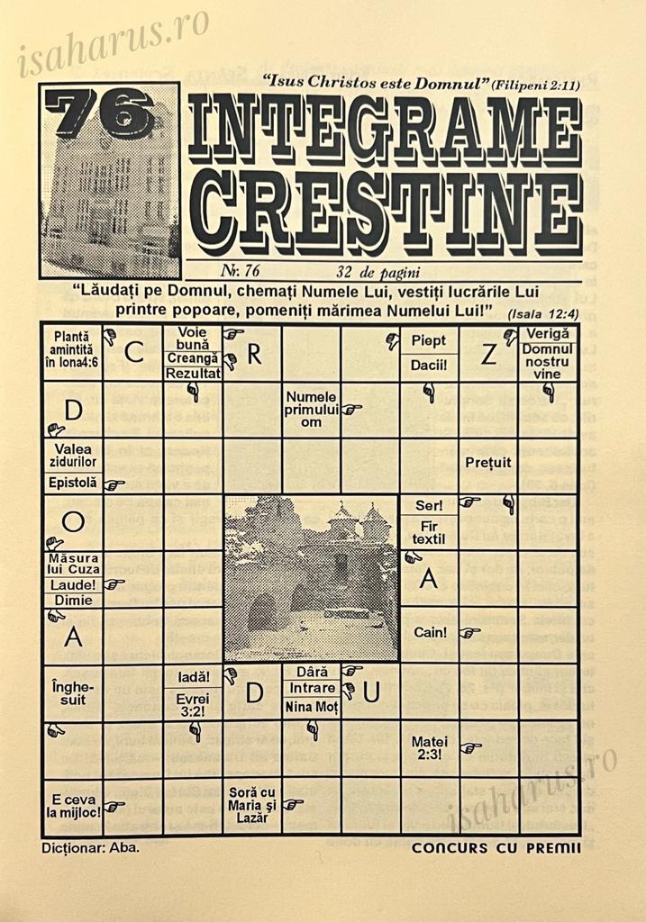 Revista "Integrame creștine" este un instrument excelent de relaxare, ba chiar unul de aprofundare a cunoștințelor biblice într-un mod cât se poate de plăcut și antrenant. Revista se adresează tuturor celor pasionați de rebusuri si integrame, dar mai ales de cunoașterea detaliată a conținutului Scripturii. Atât cei tineri, cât și adulții o vor găsi extrem de captivantă!