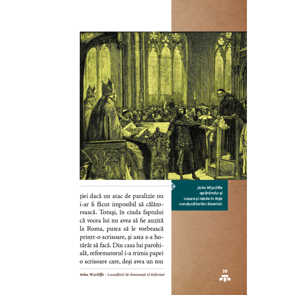 John Wycliffe a trăit în secolul al XIV-lea şi a rămas în istorie prin proiectul de traducere a Bibliei în limba engleză într-o perioadă în care oamenii de rând nu aveau acces la textele sacre în propriile limbi. Teolog, filozof, profesor universitar, scriitor, predicator, şi polemist, Wycliffe a anticipat prin cărţile, discursurile şi acţiunile sale activitatea marilor figuri ale Reformei protestante. Volumul de faţă prezintă o scurtă biografie a lui Wycliffe, aşa cum a fost scrisă de autoarea Ellen G. White în cartea Tragedia veacurilor.