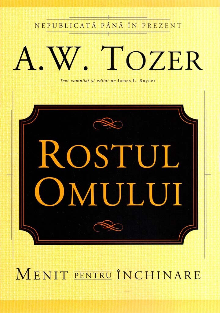 A. W. Tozer are reputatia legendara de glas profetic si este si acum, la o jumatate de veac de la moartea sa, un autor care se vinde foarte bine. Predicator in adancul sufletului, cea mai mare bucurie a sa a fost practicarea prezentei lui Dumnezeu. Inchinarea a fost centrul existentei sale si pasiunea sa mistuitoare. Prin predicile sale a declarat atat de puternic ceea ce a descoperit in timpul rugaciunii si inchinarii personale in fata Dumnezeului triunic, incat a avut si capacitatea si ungerea Duhului pentru a-si determina ascultatorii sa cugete la ceea ce spunea Dumnezeu Bisericii. Scrierile sale poarta acelasi mesaj, cu acelasi rezultat, pentru o noua generatie de inchinatori. „Rostul omului" este introducerea perfecta in opera lui Tozer. Realizata din mesaje despre care el a spus ca sunt cele mai bune invataturi ale lui, aceasta carte ii va incanta si pe cei care sunt deja familiarizati cu celelalte lucrari ale sale, fiind miscati si schimbati de ele. Ceea ce spune Tozer pe tema inchinarii aici, in "Rostul omului", va va provoca sa va reconsiderati prioritatile vietii, oferindu-va in acelasi timp un pahar cu Apa Vie pentru suflet.