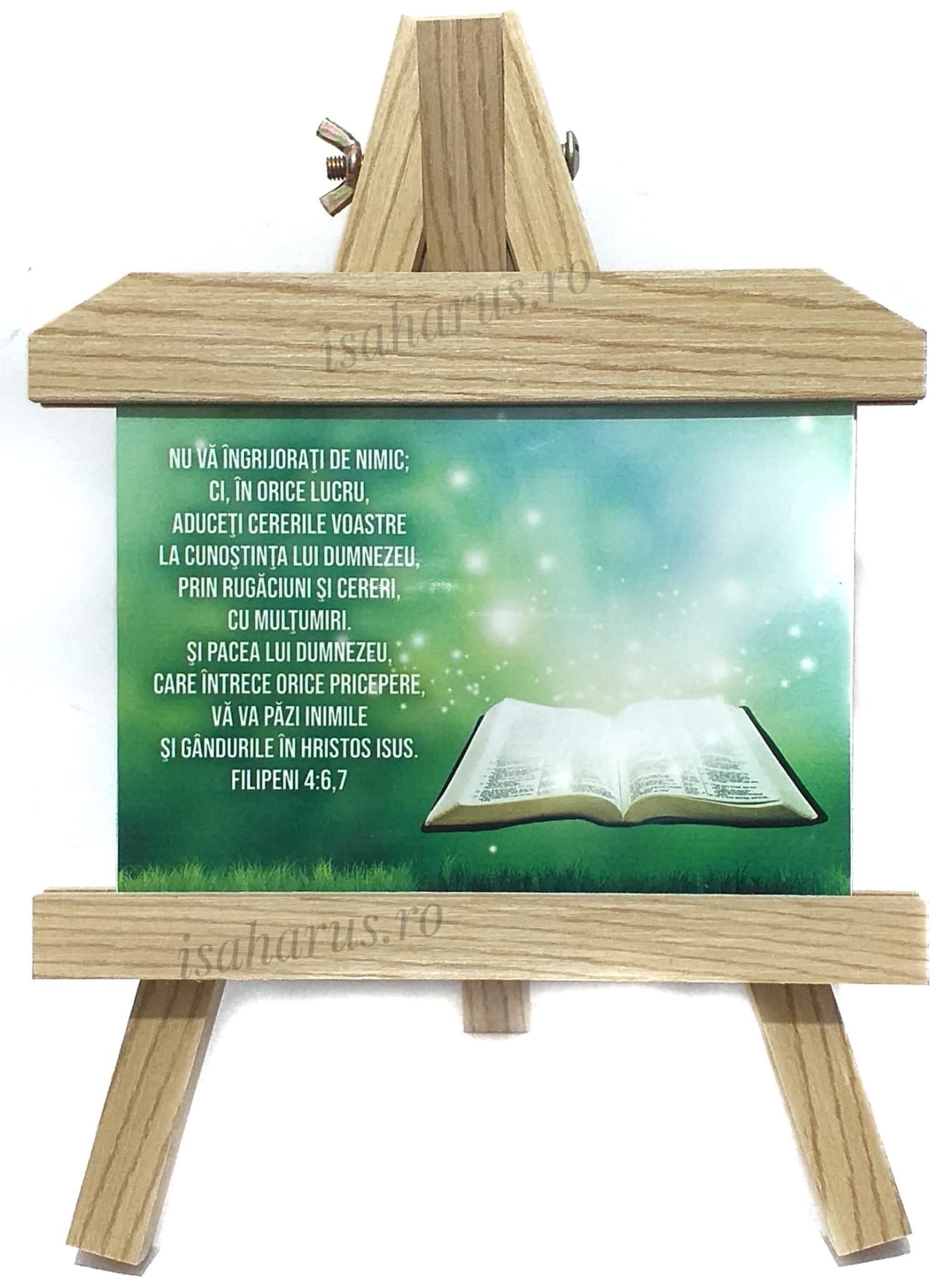 Șevalet din lemn cu plăcuță din plastic tare gravată cu mesaj. Materialul și prelucrarea de foarte bună calitate fac din acesta un cadou apreciat. Un șevalet decorativ inscripționat cu un text motivational care este ideal pentru a fi asezat pe birou sau pe mobila. Este un gest minunat oferindu-le acest cadou persoanelor din viața ta!